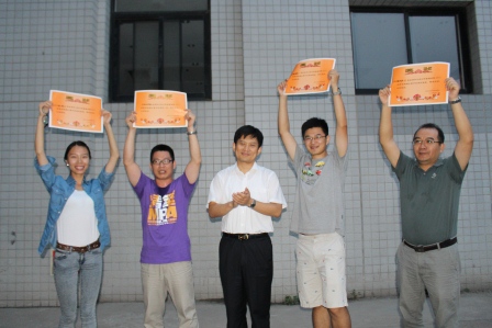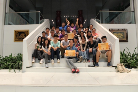 (图为比赛圆满结束时蓝煜昕老师与13级博硕班合影)