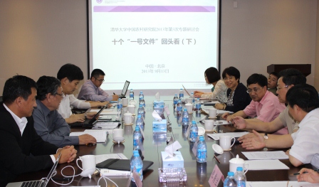 9月13日下午,清华大学中国农村研究院2013年第三次专题研讨会在农研院会议室召开。此次研讨会继续以“十个‘一号文件’回头看”为主题,特邀农业部产业政策与法规司司长张红宇,财政部农业司副司长张岩松,中国科学院农业政策研究中心主任黄季焜,北京师范大学社会发展与公共政策学院院长张秀兰,中央汇金投资有限责任公司研究员汪小亚,国务院发展研究中心农村经济研究部研究员金三林六位专家,分别围绕农村制度改革、财政支农、农业科技政策、农村最低生活保障、农村金融改革、农民工权益保障六个主题作了专题报告。农研院副院长、国家发展和改革委员会城市和小城镇改革发展中心副主任魏唯主持研讨会。