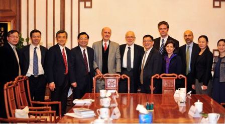 10月22日,美国布鲁金斯学会会长斯特罗布?塔尔伯特(Strobe Talbott)先生访问我院。清华大学校务委员会主任胡和平、我院院长薛澜教授、副院长孟波老师会见了塔尔伯特先生一行,陪同会见的还有清华大学国际处副处长夏广志、布鲁金斯公共政策研究中心代理主任陶然教授。双方就进一步加强合作进行了交流。