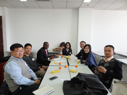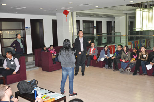 2013年11月23日中午,2013级MPA-周末班部分同学与IMPA同学在学院开展了以“Making a New Friend”为主题的交流活动。活动由孟波老师主持,共有50多名MPA同学与近20名IMPA和MID留学生参加。活动分为两个环节进行,第一环节将MPA同学分成10个组,每组由1-2名IMPA同学召集讨论,用英文互相介绍工作、学习和生活情况,对共同关心的话题交流观点和看法,增进相互了解。第二环节各组集中到一起进行了交流成果展示,分享了彼此的经验和收获,在积极的沟通中深化印象、加强友谊。整个活动由孟波老师提议,经过了半个多月的策划、协调和准备,充分听取了MPA同学和IMPA同学的意愿和需求,为同学们创造了一个灵活新颖的全新交流方式,使大家在轻松愉快的氛围中尽情畅谈、展示风采。