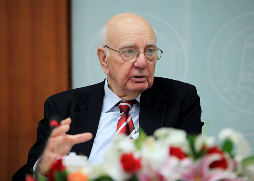2月24日,美国联邦储备局前主席保罗·沃尔克先生访问公管学院,并以“后危机时代的美联储货币政策与国际货币体系”为主题,与我院教师、校外财经领域专家、学者进行了圆桌讨论。我院院长薛澜教授主持此次讨论会。我院教师王有强、俞樵、孟波、陈玲、周绍杰、张严冰参加了讨论。