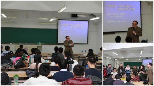 巫永平教授首先对十八届三中全会对市场作用的新表述进行了说明,围绕“我们从哪来”这一问题结合中国发展讲述了全能型国家的发展历程和特征,以“我们到哪里去”为主线依次详细解释了现代国家、政府与市场关系和市场经济的具体内容,并用价格管制、药品限价、高铁等实例对其观点进行生动解读,观点得到了广泛认同。巫永平教授浅入深出、生动幽默的语言博得了在场师生的一致好评。
