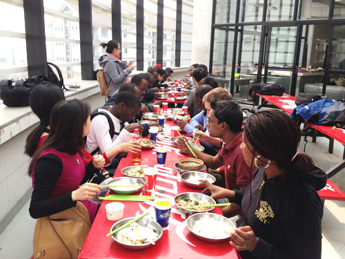 参加此次活动的留学生主要是2014级IMPA的同学,他们是带着对中国的向往与期待来到学院。用餐过程中,留学生们在中国学生的帮助下学习使用筷子,并互相交流学习生活的近况。尼日利亚的王子Prince同学说“感谢你们的组织,我很想学习中文” ,来自圭亚那总理办公室的瑞恩(Ryan)在中外学生交流微信群中发信息表示“今天的聚会对搭建和培育学院不同班级间有益的友谊很有帮助”。参加交流的博士生时可同学表示,自己这学期担任留学生课程的助教,这个活动是进一步了解留学生的好机会,之后每次都会来参加。