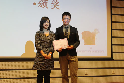 经过激烈的角逐,社会科学学院马翔宇同学的“新兴移民城市中的移民社会—以苏州市的‘东北人’群体为例”个人调研支队获得了一等奖,“浙江省玉环县清薪办讨薪模式研究支队”和“潘涂村土地维权抗争事件调查分析支队”2支队伍获得了二等奖,“安徽省小岗村土地流转现状调研支队”、“异地高考支队”和“安阳市非法集资事件调研支队”3支队伍获得了三等奖。同时,根据支队的现场表现,评选出单项奖,“草原规模化经营对保护集体草原的影响机制分析及政策建议支队”获最佳风采展示奖,云南省南涧县“美丽乡村”参与式规划机制研究获最具学术潜力奖,“新农合政策支付方式及支付范围问题研究支队”获最具政策可行性奖,“解锁工程——精神病人的回归社会的道路支队”获最具创意奖。“异地高考”支队获得现场观众投票产生的最具人气奖。