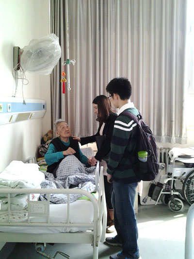 志愿者们中午12:00在清华西门集合完毕,乘坐地铁历时两个小时到达松堂医院。由于大多数志愿者此前并没有参加该活动的经历,初到松堂,不知道采取何种形式给老人带去关爱。但院里的老人们对志愿者非常热情。住在东楼的周奶奶和大家热情地打招呼,并讲述了自己少年和青年时代的经历,老人丰富的人生阅历引得志愿者们一致称赞,大家细致地聆听,积极地回应,老人风趣的谈吐使得整个志愿过程充满欢乐和笑声。面对孤单、思念儿女的老人,志愿者们与他们手握手地谈话,耐心地回答老人的疑问。
