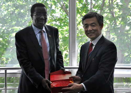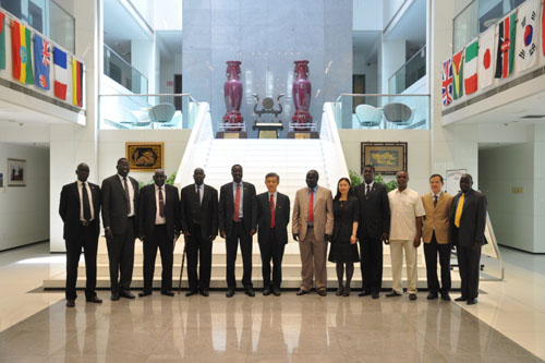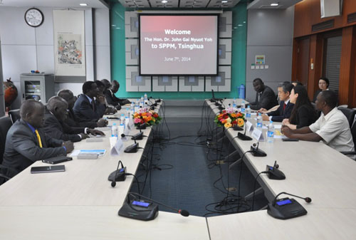 6月7日上午,南苏丹教育科技部长约翰·盖·尤阿率团访问清华大学。清华大学副校长兼教务长袁驷在工字厅会见了来宾。随后,尤阿一行继续来到我院访问,院长薛澜同尤阿就促进双方合作进行了交流,副院长孟波、于安教授以及IMPA2014级南苏丹籍学生参加了会见。
