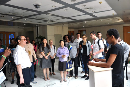 6月5日,《领导科学与艺术》英文课程的30名留学生在授课教师王有强教授的带领下,赴天津泰达经济技术开发区进行为期一天的社会实践,副院长孟波参加了本次活动。