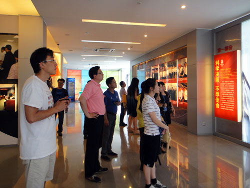 同志们认真观看展览