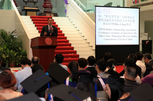 签约仪式结束后,赵昕先生和杜比的其他代表参加了公共管理学院2014年夏季毕业典礼,并在典礼上讲话。