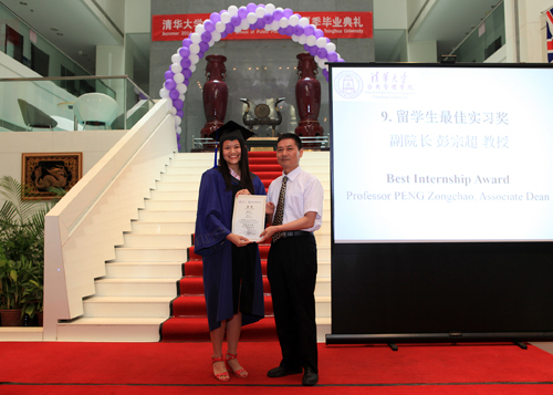 随后,学院老师为优秀毕业生颁发了荣誉。其中,5位同学获得“公共部门就业奖励金”(杨异、贺小培、丁芳、高勇、何冰清),6位同学获得优秀学位论文奖(校优硕士论文奖:朱翠娇、王熙、吴仕锦、杨文辉、高雪;院优论文奖:张娟)。此外,针对留学生颁发的“最佳实习奖”由留学生黄可仁获得。