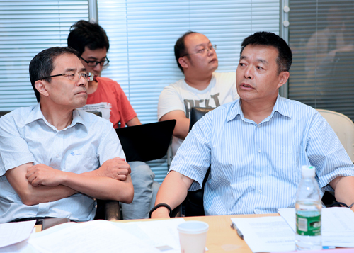 与会专家提出修改完善建议(左一:于安教授  右一:胡鞍钢教授)
