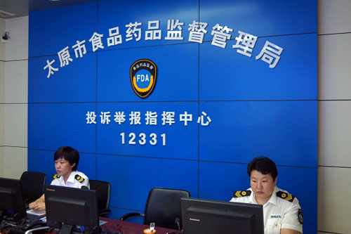 图为调研组参观太原市食药监管局投诉举报指挥中心