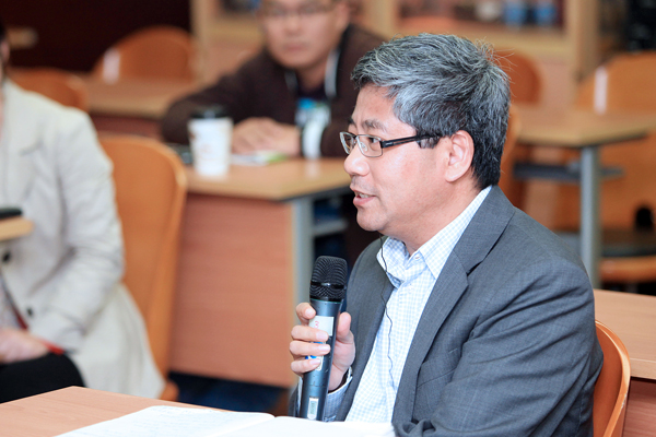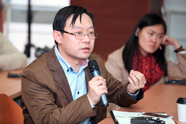 图为清华公管学院高宇宁老师与主讲人交流。