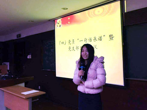 会上讨论了近期入党积极分子的发展情况,批准同意将五位同学列入年度党员发展计划。入党积极分子汇报了自己的思想状况并对努力提高个人修养、向组织积极靠拢提出了自己的行动目标。入党积极分子联系人介绍了积极分子的近期培养情况以及未来的培养计划。