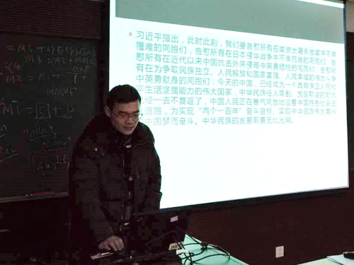 图为裴俊巍同学解读习近平总书记讲话。