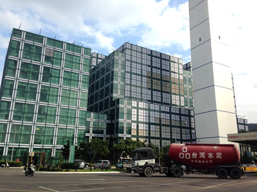 图为八里垃圾焚化厂,外观由贝聿铭建筑师事务所设计,采用巴黎卢浮宫金字塔类似玻璃帷幕。