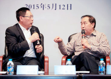 图为嘉宾任志强(左)和秦淮(右)现场讨论。