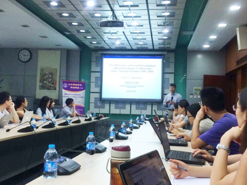 6月30日上午,由清华大学公共管理学院主办的公共管理学术前沿系列讲座第三讲在我院302会议室举办,德州大学奥斯汀分校政府系助理教授吕晓波以《精英动员与社会政策制定:来自全国人大与政协会议的证据(1983–2007)》为题进行了讲座。清华大学公共管理学院教授朱旭峰主持、副教授梅赐琪点评,我院陈玲老师、蒙克老师及我校政治学系于晓虹老师等40余名校内外师生出席了本次讲座。