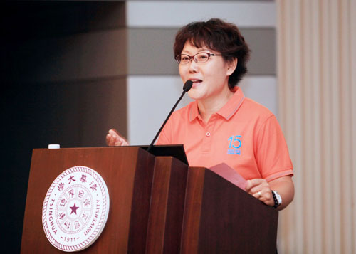 图为方惠坚老师为新生做清华历史回顾讲座。