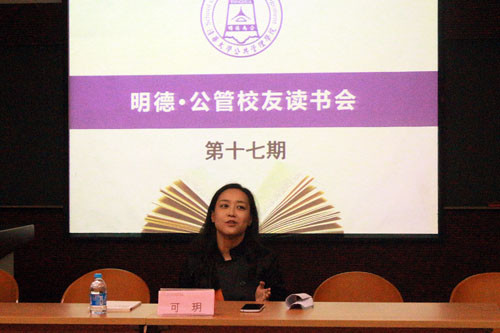 9月24日晚,第十七期明德·公管校友读书会活动在学院423教室举行。本次读书会由公共管理学院朱旭峰教授领读,公管学院04级院友、明德·公管校友读书会理事会理事可玥主持,来自社会各界的多名院友参加了此次活动。朱旭峰老师领读了他本人的著作《政策变迁中的专家参与》,与院友们分享他对中国政策变迁中专家参与行为的研究成果。