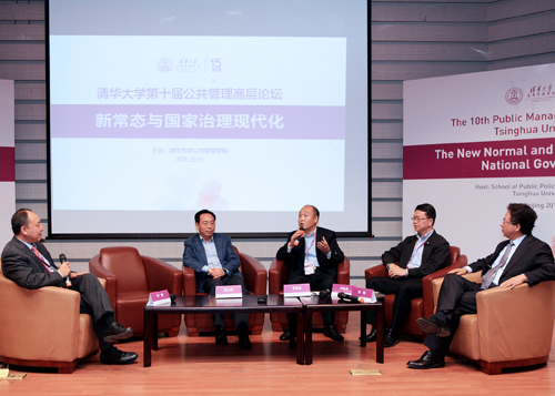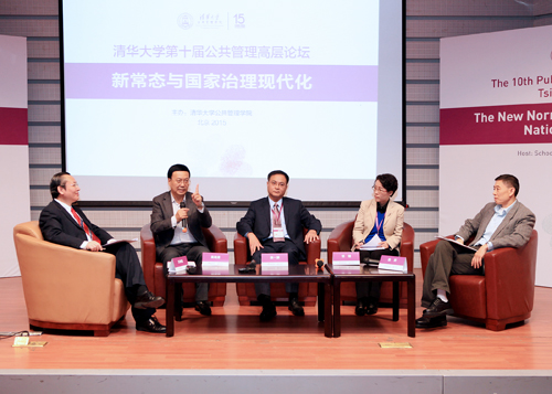 10月24日,在党的十八届五中全会召开前夕,清华大学公共管理学院以“新常态与国家治理现代化”为主题召开学术研讨会庆祝建院15周年。会议邀请了国务院发展研究中心、国家发展和改革委员会、民政部等政策部门和社科院、国家行政学院等学术机构的专家、学者,以及工作在公共管理实践一线的清华校友,围绕“五年规划”与经济发展、中央与地方关系、创新驱动发展、社会组织与社会治理等主题展开交流讨论,200多名学者和公共管理实践者与会。