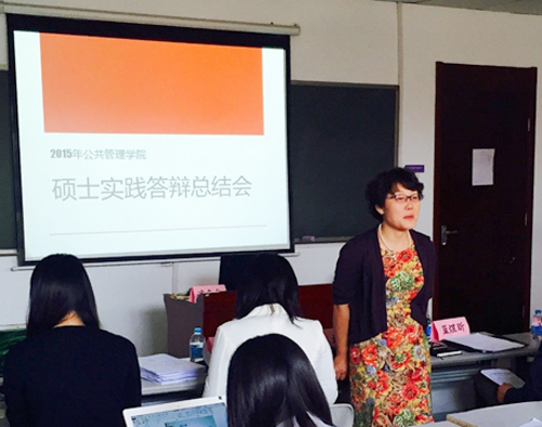 公管之道,实践当先。2015年公管学院暑期实践再获金奖!为总结优秀经验,分享实践成果,10月15日下午,公共管理学院硕士实践总结会暨金奖成果分享会于学院319教室顺利举行。此次一共有2支院级支队的20名同学和参与学校8支支队的11名同学参加了答辩。学院党委副书记谢矜、案例中心主任慕玲、研工组组长蓝煜昕、研工组副组长刘近文、校研团委实践部部长杨孟昊出席活动。