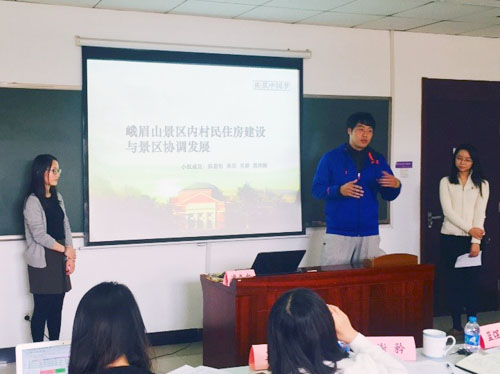 学院赴上海黄浦区支队对上海的创新创业环境做了深入考察,并提出“提升人才服务功能”等具体政策建议。该支队是本次实践的校级金奖支队,11名成员团结合作,3个课题组有序分工,获得了大量一手资料,并在此基础上完成了高质量的总结报告。作为本次展示的重点之一,他们分别从理论综述、研究设计、调研过程、经验体会、成果展示等方面做了分享,获得了老师的高度评价。学院赴四川峨嵋山支队对乡村治理困境、住房建设与景区协调等问题进行了全面而细致的调研。慕玲老师、蓝煜昕老师对峨眉山支队的报告表现出了浓厚兴趣,问及了峨嵋山乡村治理面临的困境以及地方领导对同学调研报告的回应,同学的回答幽默而机智,一一解答了老师们的问题。