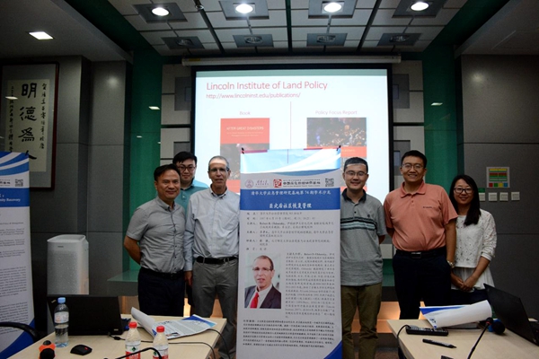 6月15日晚,清华大学应急管理研究基地(以下简称“基地”)第74期学术沙龙在清华公管学院302会议室举行。伊利诺伊大学厄巴纳-香槟分校城市与区域规划系主任Robert B. Olshansky教授应邀作《巨灾后社区恢复管理》讲座。基地副主任吕孝礼主持本次讲座,基地毕业生、北京师范大学社会发展与公共政策学院副院长张强担任评论人。来自清华大学、北京师范大学等的校内外师生,及中央党校等相关单位的同仁参加了本次讲座。