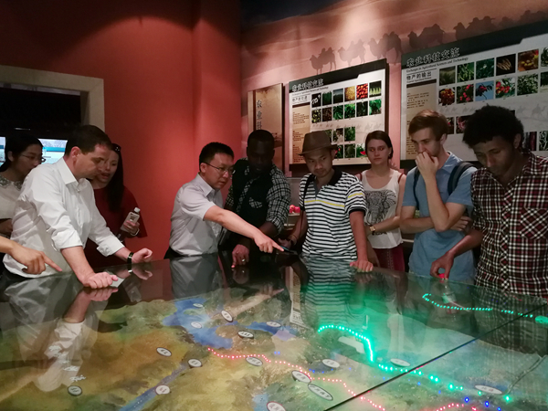 MIDG留学生首先到达了陕西杨凌,与已在这里参访两天的MID2016级留学生汇合。杨凌是中国第一个农业高新技术产业示范区,在现代农业种植研究领域具有领先全国的技术优势。在这里,留学生先参观了西北农林科技大学内的中国农业历史博物馆,博物馆分上下两层,按照历史顺序布展,分为“原始农业厅”、“三代农业厅”、“汉唐农业厅”、“宋元农业厅”、“明清农业厅”和“近现代农业厅”六部分,保存了2000余件历代农业工具、种子、生活用品等农史实物,其中500余件为珍贵农史文物。