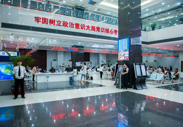 图为天津自贸区滨海新区中心商务区综合服务大厅。
