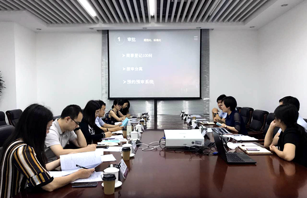 徐斐主任及相关工作人员向调研组介绍中心行政审批改革创新的相关情况