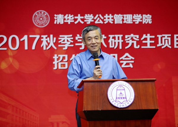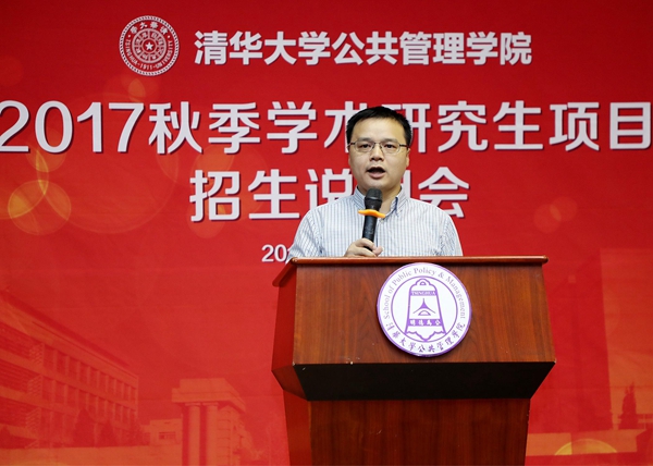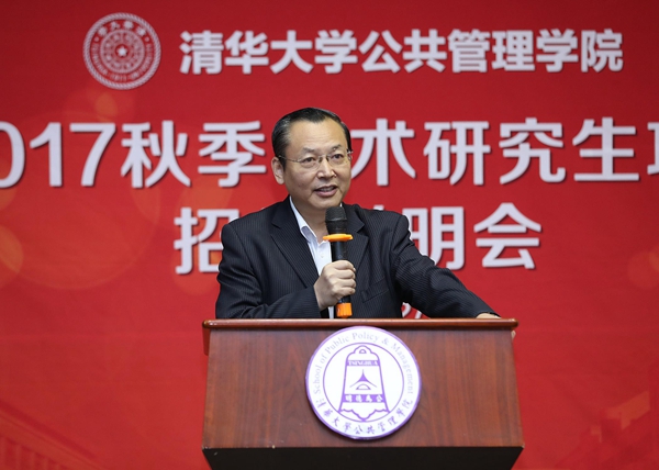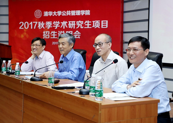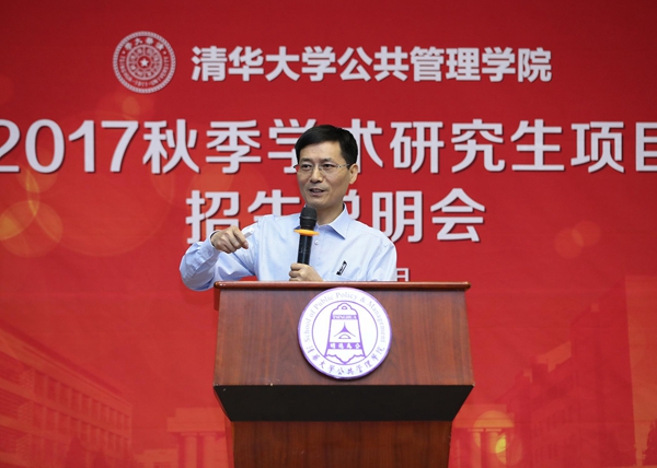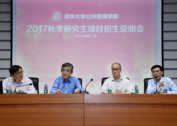 8月27日上午,清华大学公共管理学院2017秋季学术研究生项目招生说明会在学院报告厅举办。清华公管学院院长薛澜、学位分委员会主席巫永平、副院长朱旭峰、副院长彭宗超分别对学院发展概况、学术生培养与发展、双学位项目&跨文化交流证书项目、直博兼修硕士项目进行了介绍。清华公管学院副院长杨永恒,学院教授王有强,副教授、MID/MIDG项目主任殷成志出席并作讲话。清华大学招生办副主任王任模、清华公管学院党委副书记谢矜,现场进行招生问题解读。清华公管学院院长助理慕玲,教学办、外办相关老师参与会议。说明会由清华公管学院教学办主任冯叶主持。