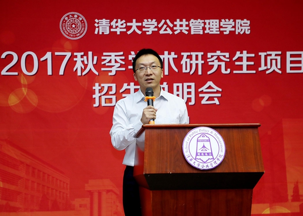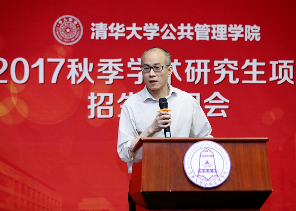 图为清华公管学院学位分委员会主席巫永平介绍学术硕博研究生培养与招生政策。