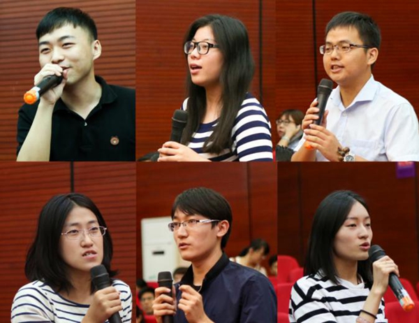 学术研究生项目介绍环节结束后,王有强、杨永恒、殷成志与现场学生分享了各自的学术经验与心得。其中王有强以崭新的方式解读了学院英文缩写“SPPM”即“科学、原理、实践、方法”,鼓励同学们面对未知问题,以实践检验真理,找寻实践方法,增加个人成长内涵。而殷成志则以“多元化视角透析世界”为主题,建议同学们了解自己、了解世界、培养技能、认清优势。杨永恒则在分享环节以“公益情怀及创新能力”为着力点,叮嘱同学们应当具有责任意识,立足中国实际,开展中国特色理论研究,解决以生态环境、贫富差距等为代表的“中国式”问题,具备创新理念,实现自身学术追求。