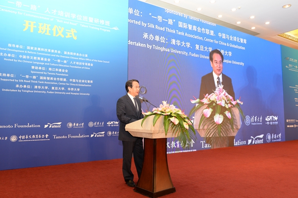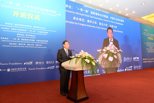 清华大学副校长、教务长杨斌在视频致辞中表示,清华将通过公共治理、区域发展、法律建设和跨文化沟通等多个方面的丰富课程,帮助学员深入理解“一带一路”这一国际倡议的实质性内涵。