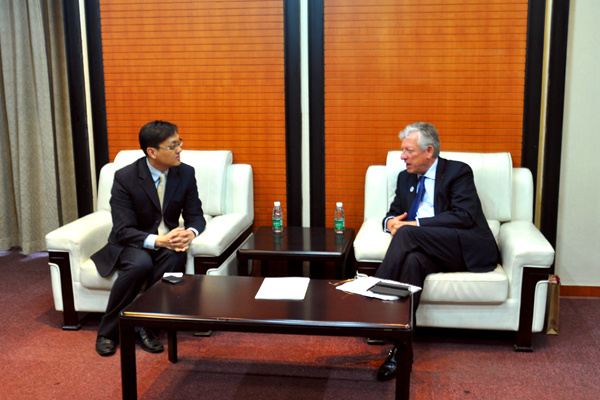 图为朱旭峰会见FrancisVérillaud副校长。