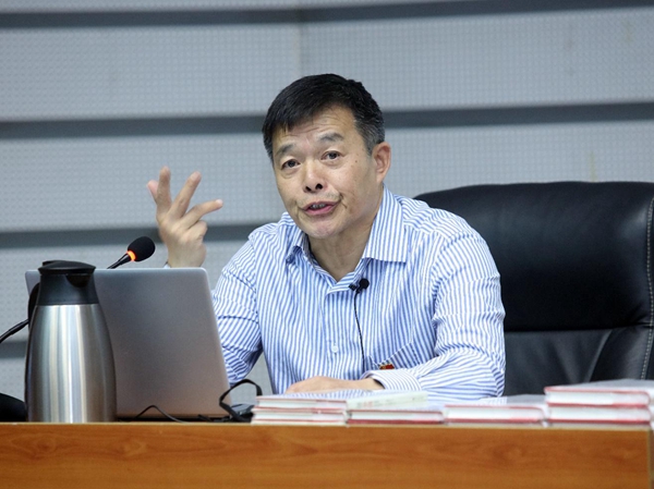 图为清华大学国情研究院院长、公共管理学院教授胡鞍钢作报告。