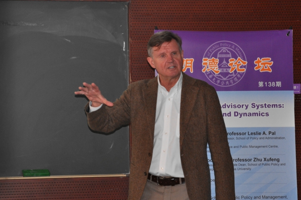 11月3日下午,清华大学公共管理学院第138期明德论坛在清华公管学院428教室举行。加拿大卡尔顿大学(Carleton University, Ottawa, Canada)公共政策学院“校长教授”Leslie A. Pal在论坛上以《全球政策咨询系统概况及其演变》为题发表演讲。讲座由清华公管学院副院长朱旭峰主持。