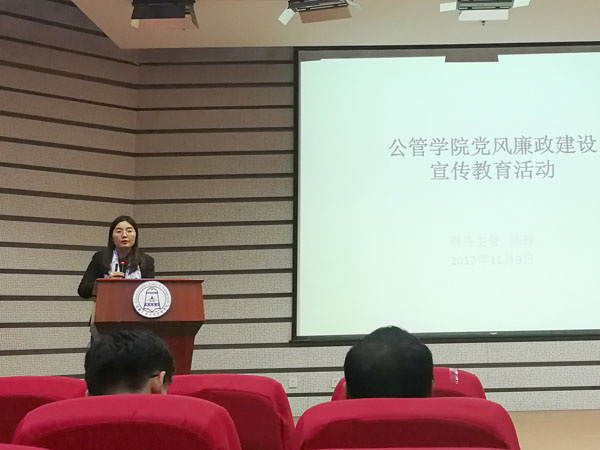 11月9日下午,清华公管学院党风廉政建设宣传教育专题活动在学院报告厅举办,院长助理、财务主管慕玲介绍了财务管理中的典型案例及风险防控知识,清华大学南区财务室财务主管袁继英应邀前来讲授经费管理中的重要问题及学校相关管理规定,学院教职员与南区财务室工作人员约50人参加本次学习活动。