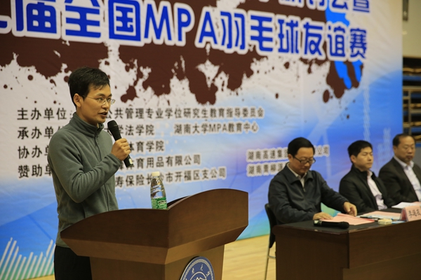 11月11日,湘江碧透辽阔,爱晚亭钟灵毓秀,岳麓山层林尽染,橘子洲头百舸争流。2017年MPA文体教学研讨会暨第二届全国MPA羽毛球友谊赛在湖南大学体育馆隆重开幕。来自北京大学、清华大学、中国人民大学和南开大学等全国28所高校的328名师生踏着金秋落叶,相约如诗如画的湖大校园。