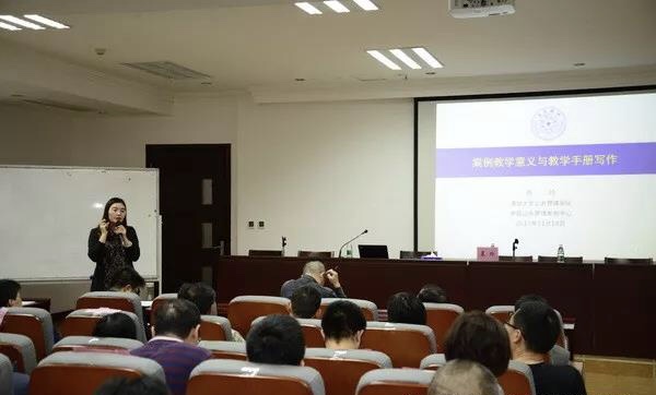 图为慕玲主讲《案例教学意义与教学手册写作》。