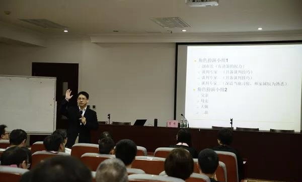 曹峰首先作《社会冲突管理与谈判》专题报告。曹峰详细阐述了社会冲突的概念、包括的范围和表现,接着围绕一个政府与民众产生冲突的实际案例,现场组织参会老师模拟政府与民众谈判的场景并进行角色扮演。这种开放式、互动式的案例教学方式让老师们在情景模拟中亲身体会到社会冲突的真实感,将理论和实践结合起来,提升参与者分析和解决问题的能力。