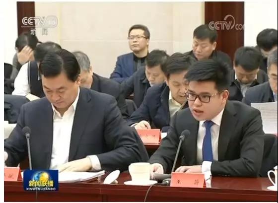 图为王蔚在学习宣传贯彻习近平新时代中国特色社会主义思想系列研讨会上发言,被中央电视台《新闻联播》报道。