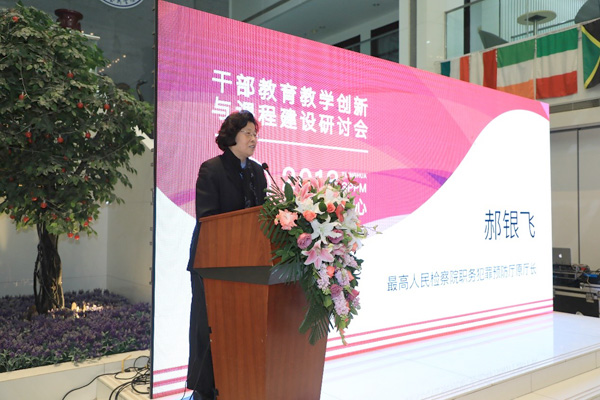 最高人民检察院职务犯罪预防厅原厅长郝银飞在会上发言。她建议在干部培训课程中设置反腐败和预防职务犯罪的专题,这样的课程能够使专门从事这项工作的干部结合经验进行思考与深化;对其他干部则能起到阶段性的提示与警醒作用。