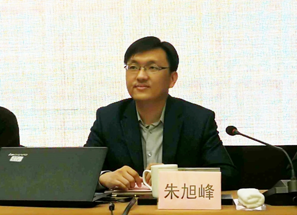 图为清华公管学院副院长朱旭峰汇报学院近况。