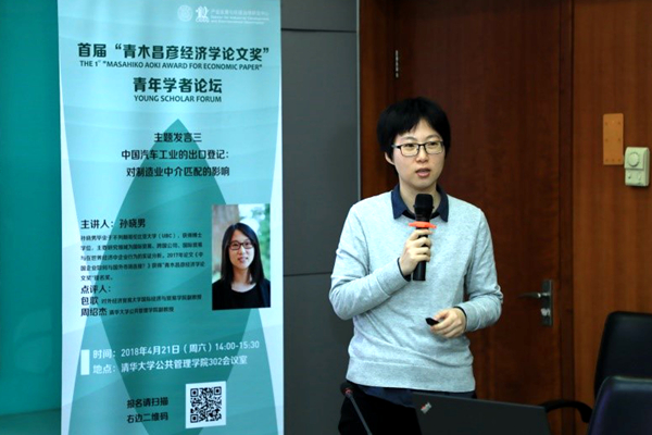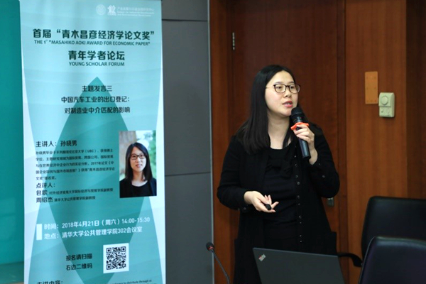 图为亚洲成长研究所高级研究员、2017青木昌彦经济学论文奖提名奖获得者孙晓男做主题发言。