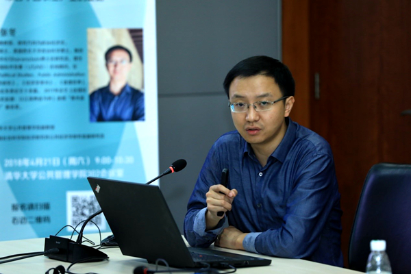 图为香港岭南大学助理教授、2017青木昌彦经济学论文奖提名奖获得者张冬做主题发言。