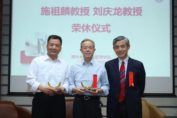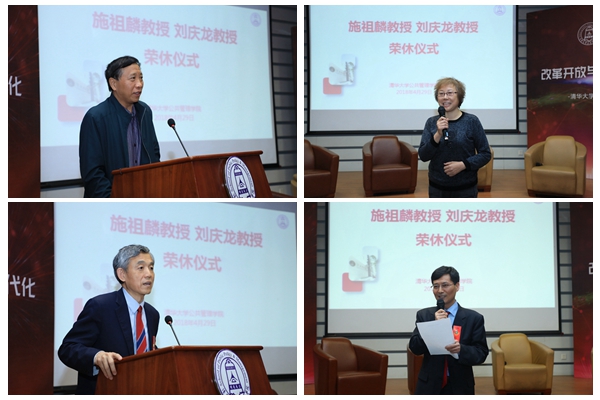4月29日上午,清华公管学院在报告厅为施祖麟教授、刘庆龙教授举办教师荣休仪式。