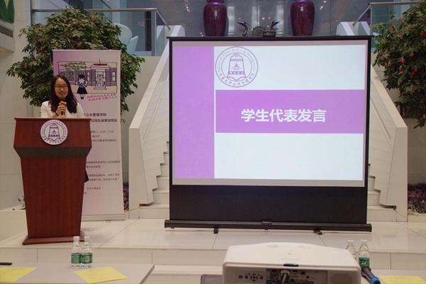 行政管理辅修专业16级学生、来自机械工程系的董昊同学作为学生代表,分享了参与行政管理本科二学位项目的诸多收获与点滴心得,并为到场同学提供了宝贵的求学建议。