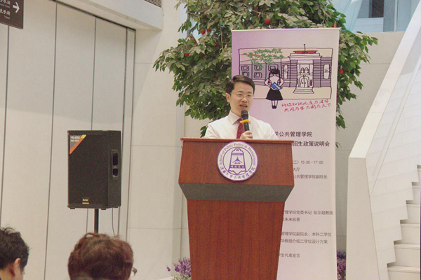 5月8日下午,清华大学公共管理学院行政管理本科第二学位招生说明会在学院大厅举行。说明会由清华公管学院副院长、二学位项目主任王亚华主持。党委书记彭宗超,党委副书记谢矜,学院教师代表于永达、张楠等出席。全校各院系近50名同学参与此次说明会。